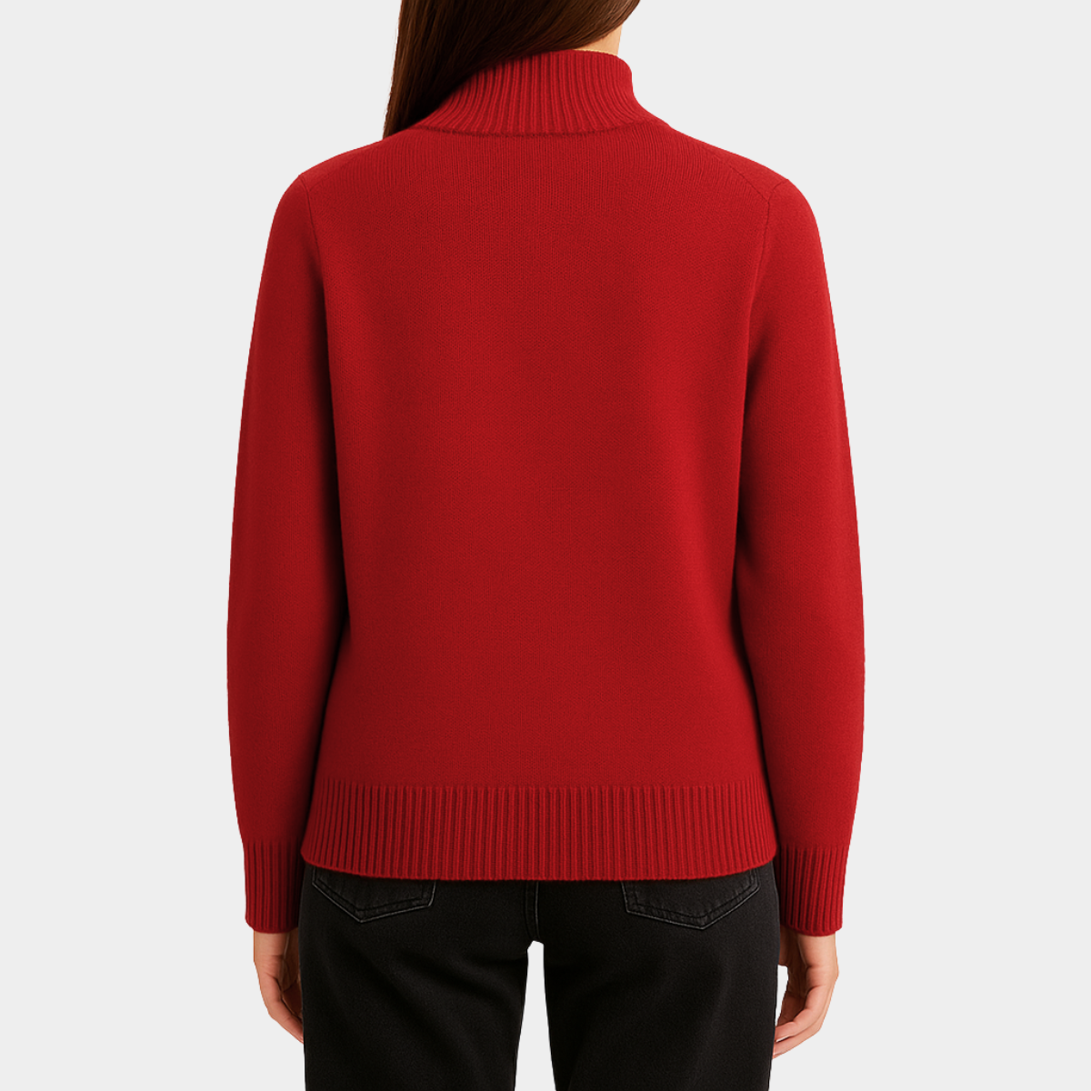 1- Cuello alto tipo mock neck que aporta elegancia y abrigo.